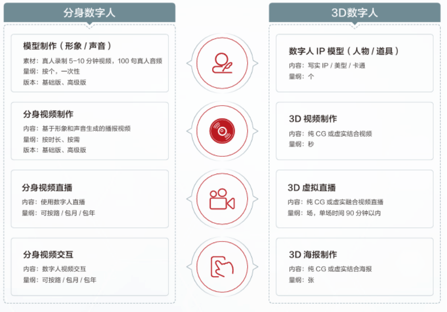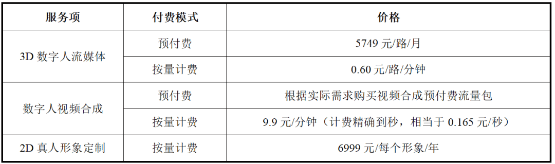 AI数字人的成长基于人工智能、计较机图形学取及时衬着等手艺的成熟,典型的场景有曲播数字人、AI短视频内容出产、智能客服、虚拟从播、安全代办署理人、AI数字员工、虚拟导逛、虚拟员等。能够分成算法驱动型数字人和实人驱动型,跟着VR/AR硬件设备的普及和收集传输手艺的前进(5.5G/6G),具体收费尺度如下: